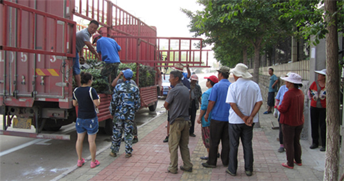 清晨6點(diǎn)職工已到達(dá)綠化工地現(xiàn)場, 準(zhǔn)備卸苗木