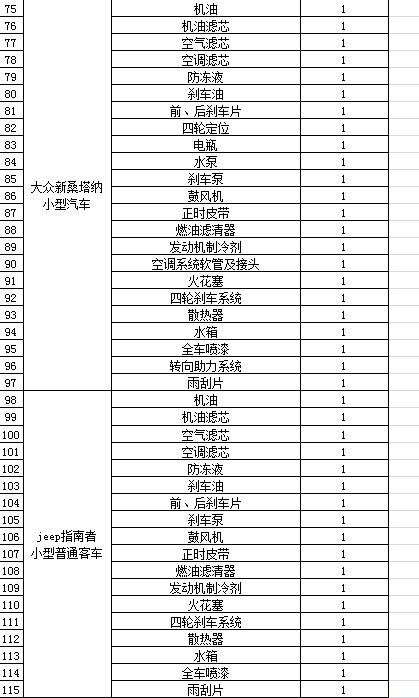 (4)采購內(nèi)容:威海城建集團(tuán)10輛公車定點(diǎn)維修保養(yǎng)等服務(wù)內(nèi)容,采購清單詳見附件。