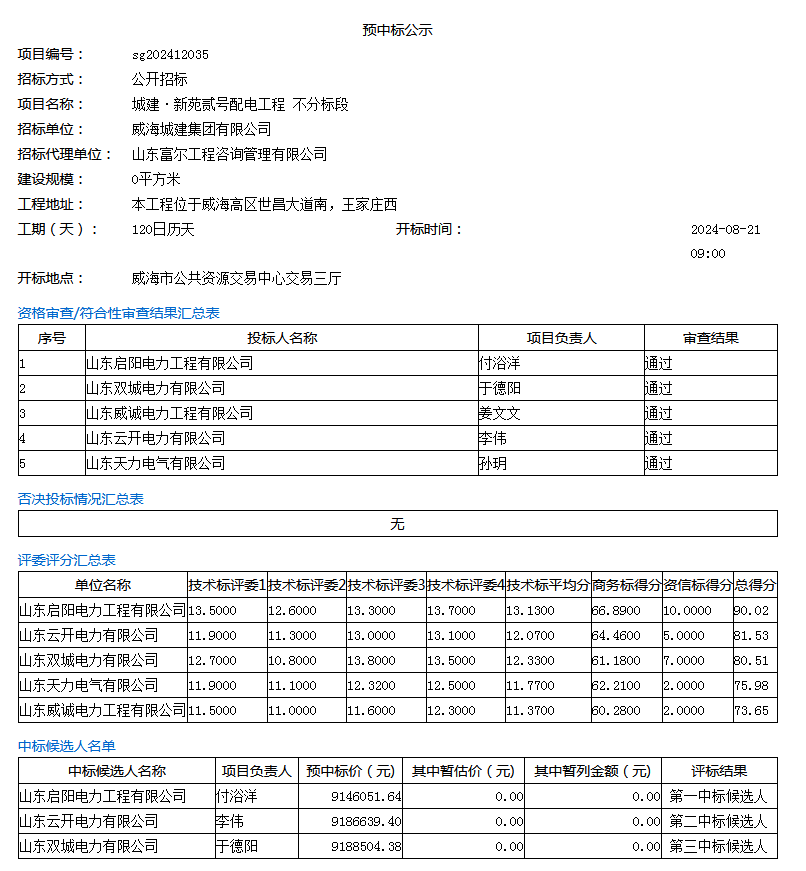 預(yù)中標公示